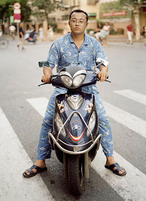 e-mail from the photographer Justin Guariglia announcing a book signing at ICP this coming Friday for his new book “Planet Shanghai”. The book, which is essentially about the look and style of Shanghai, features dozens and dozens of pictures of people wearing pyjamas outdoors, as well as close-ups of Chinese footwear, Shanghai shoppers, and futuristic looking motorcycle riders.